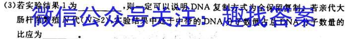 (3)若实验结果1为,则一定可以说明DNA复制方式为全保留复制。若亲代大肠杆菌繁殖N代(N≥2),实验结果中处于中带的DNA分子数母占总DNA分子数的比应为。