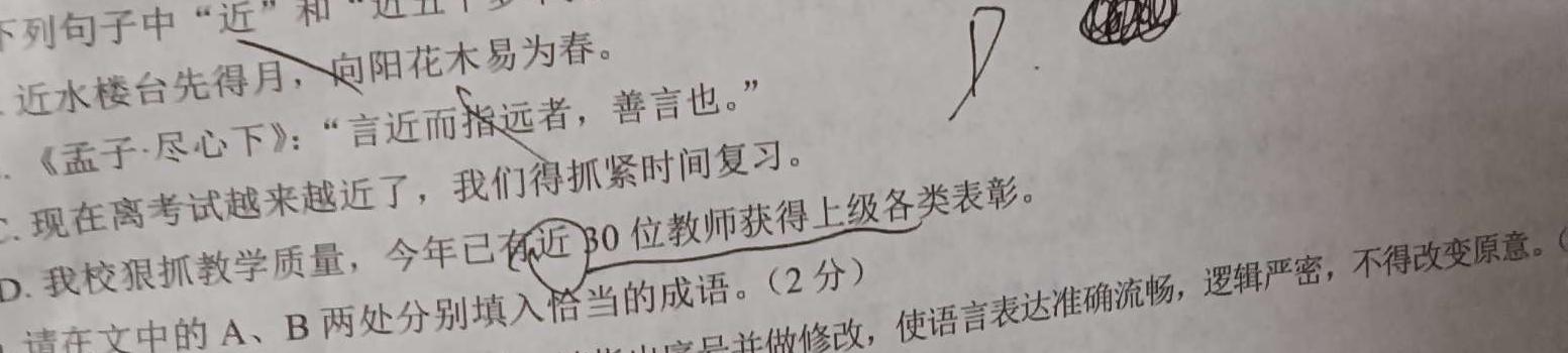 河北省2023~2024高二第一学期一调考试(24104B)语文试卷答案,我们目前收集并整理关于河北省2023~2024高二第一学期一调考试(24104B)语文得系列试题及其答案,更多试题答案请关注我们/p>