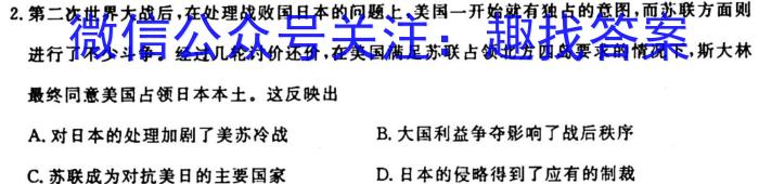 2.第二次世界大战后,在处理战败国日本的问题上,美国一开始就有独占的意图,而苏联方面则进行了不少斗争。经过几轮讨价还价,在美国满足苏联占领北方四岛要求的情况下,斯大林最终同意美国占领日本本土。这反映出A.对日本的处理加剧了美苏冷战B.大国利益争夺影响了战后秩序C.苏联成为对抗美日的主要国家D.日本的侵略得到了应有的制裁