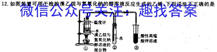 12.如图装置可用于检验溴乙烷与氢氧化钠的醇溶液反应生成的乙烯,下列说法不正确的是A.该反应为消去反应B.实验过程中可观察到酸性KMnO4溶液褪色C.乙烯难溶于水,故此装置②可以省去D.可用溴水代替酸性KMnO4溶液
