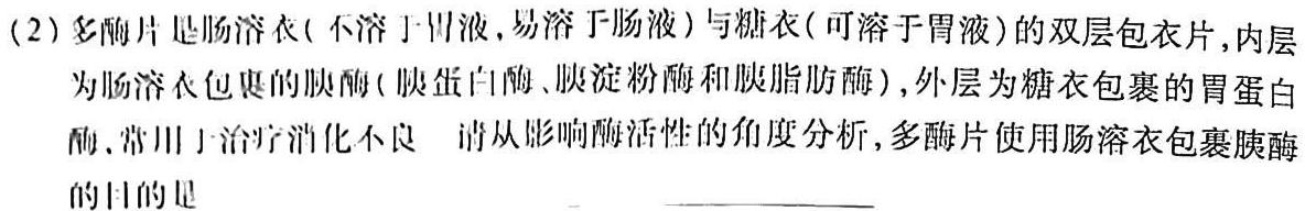 (2)多酶片肠溶衣(不溶于固液,易溶于肠液)与糖衣(可溶于胃液)的双层包衣片,内层为肠溶衣包裹的酶(快蛋白酶、胰淀粉酶和胰脂肪酶),外层为糖衣包裹的胃蛋白酶,常用于治疗消化不良请从影响酶活性的角度分析,多酶片使用肠溶衣包裹胰酶的目的是