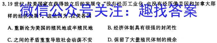 3.19世纪,拉美国家在获得独立后的发展中,“没有经历工业化,也没有经历像美国和加拿大那样的经济发展”。这是因为,拉美各国A.重新沦为美国的殖民地或半殖民地B.经济体制具有很强的封闭性C.之间的矛盾重重导致社会动荡不安D.保留了大册殖民体制的残余