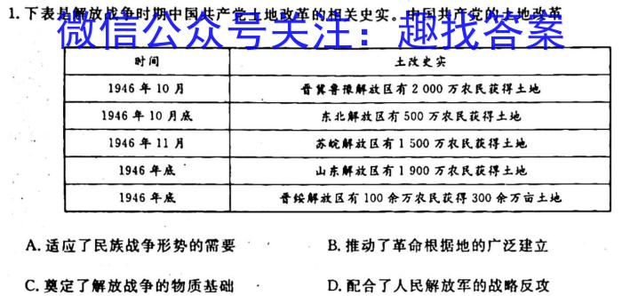 1.下表是时期的相关史实。的A.适应了民族战争形势的需要B.推动了革命根据地的广泛建立C.奠定了的物质基础D.配合了的战略反攻
