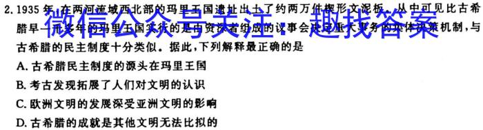 2.1935年,在两河流域西北部的玛里王国遗址出土了约两万件楔形文泥板。从中可见比古希腊早一千多年的玛里王国实行的是由资深者组成的议事会决定重大事务的集体决策机制,与古希腊的民主制度十分类似。据此,下列解释最正确的是A.古希腊民主制度的源头在玛里王国B.考古发现拓展了人们对文明的认识C.欧洲文明的发展深受亚洲文明的影响D.古希腊的成就是其他文明无法比拟的
