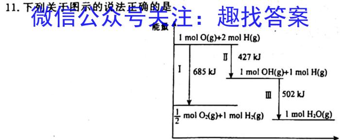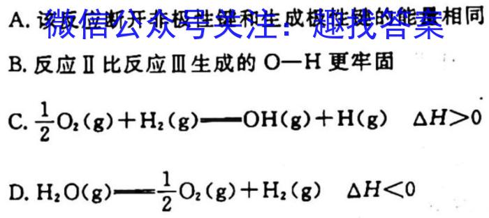11.下列关于图示的说法正确的是能量A.该反应断开非极性键和生成极性键的能量相同B.反应Ⅱ比反应Ⅲ生成的-H更牢固C.12(g)+H2(g)OH(g)+H(g)H>0D.H2O(g)21O2(g)+H2(g)H<