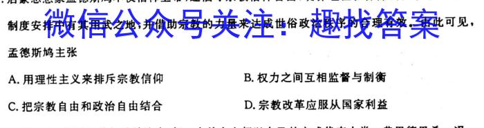 7.启蒙思想家孟德斯鸠不仅信仰上帝,还倡导宗教信仰自由,确保理性在保障公民政治自由的制度安排中有其用武之地,并借助宗教的力量来达成世俗政治秩序的合理有效。由此可见,孟德斯鸠主张A.用理性主义来排斥宗教信仰B.权力之间互相监督与制衡C.把和政治自由结合D.宗教改革应服从国家利益