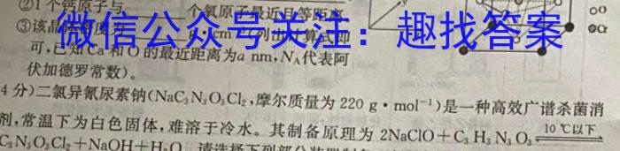 (5)氧铬酸钙是一种常见含铬矿石,其立方品胞如图所示。①氧铬酸钙的化学式为②1个钙原子与个氧原子最近且等距离,③该晶体密度为gcm^-3(列出计算式即可,已知Ca和的最近距离为anm,NA代表阿伏加德罗常数)。。
