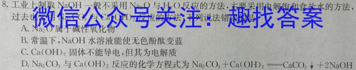 8.工业上制取NaOH一般不采用Na2O与H2O反应的方法,主要采用电解饱和食盐水的方法,过去也采用Na2CO3与Ca(OH)2反应的方法,下列说法错误的是A.Na2O属于碱性氧化物B.常温下,NaOH水溶液能使无色酚酞变蓝C.Ca(OH)2固体不能导电,但其为电解质