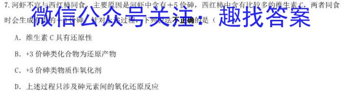 7.河虾不宜与西红柿同食,主要原因是河虾中含有+5价砷,西红柿中含有比较多的维生素C,两者同食时会生成有毒的+3价砷。针对上述过程,下列说法不正确的是()A.维生素C具有还原性B.+3价砷类化合物为还原产物C.+5价砷类物质作氧化剂D.上述过程只涉及砷元素间的氧化还原反应