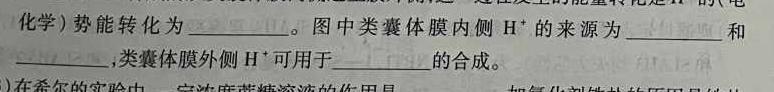 (2)H^+通过ATP合成酶从类囊体膜内侧运至膜外侧,这一过程发生的能量转化是H^+的(电化学)势能转化为。图中类囊体膜内侧H^+的来源为和;类囊体膜外侧可用于的合成。