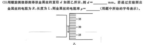 (3)用螺旋测微器测得该金属丝的直径d如图乙所示,则d=mm。若通过实验测出金属丝的电阻为R,长度为L,则金属丝的电阻率ρ=(用题中所给的字母表示)。