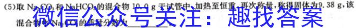 (5)取Na2CO3和NaHCO3的混合物10.0g于试管中,加热至恒重,再次称量,称得固体为9.38g,该混合物中Na2CO3的质量分数为.