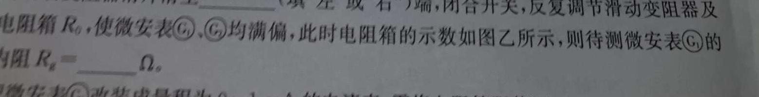 (2)将滑动变阻器滑片滑至(填“左”或“右”)端,闭合开关,反复调节滑动变阻器及电阻箱R0,使微安表均满偏,此时电阻箱的示数如图乙所示,则待测微安表circledG内阻R8=