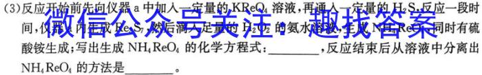 (3)反应开始前先向仪器a中加入一定量的KReO4溶液,再通入一定量的H2S,,反应一段时间,仪器a内生成Re2S7,,然后滴入足量的H2O2的氨水溶液,生成NH4ReO4,,同时有硫酸铵生成;写出生成NH4ReO4的化学方程式:,反应结束后从溶液中分离出NH4ReO4的方法是。