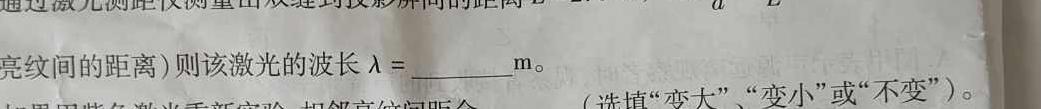 (2)通过激光测距仪测量出双缝到投影屏间的距离L=2.0m,,已知d=xL(x为相邻两条亮纹距离)则该激光的波长λ=m。