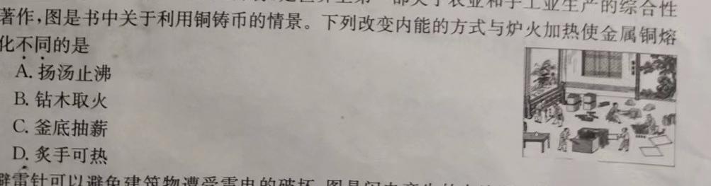 3.明朝科学家宋应星所著《天工开物》是世界上第一部关于农业和手工业生产的综合性著作,图是书中关于利用铜铸币的情景。下列改变内能的方式与炉火加热使金属铜熔化不同的是A.扬汤止沸B.钻木取火C.釜底抽薪D.炙手可热
