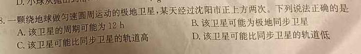 8.一颗绕地球做匀速圆周运动的极地卫星,某天经过沈阳市正上方两次,下列说法正确的是B.该卫星可能为极地同步卫星A.该卫星的周期可能为12hC.该卫星可能比同步卫星的轨道高D.该卫星可能比同步卫星的轨道低
