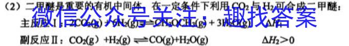 (2)二甲醚是重要的有机中间体,在一定条件下利用CO2与H2可合成二甲醚:主反应I:2CO2(g)+6H2(g)CH3OCH3(g)+3H2O(g)H1副反应Ⅱ:CO2(g)+H2(g)CO(g)+H2O(g)H2>0