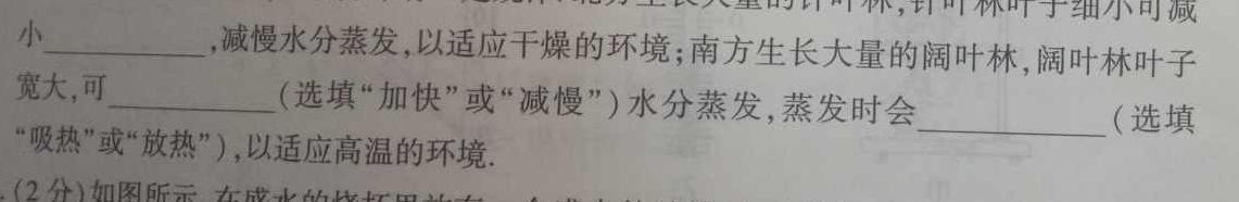 15.(3分)为了适应环境,植物分布有一定规律.北方生长大量的针叶林,针叶林叶子细小可减小减慢水分蒸发,以适应干燥的环境;南方生长大量的阔叶林,阔叶林叶子宽大,可(选填“加快”或“减慢”)水分蒸发,蒸发时会(选填“吸热”或“放热”),以适应高温的环境.