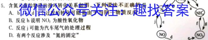 5.含氮元素的物质的循环转化关系如图。下列说法不正确的是A.b、c、d三个过程的转化可能是由于与同一物质反应B.反应h说明NO2为酸性氧化物C.反应可能为汽车尾气的处理过程D.有两个反应涉及“氮的固定”
