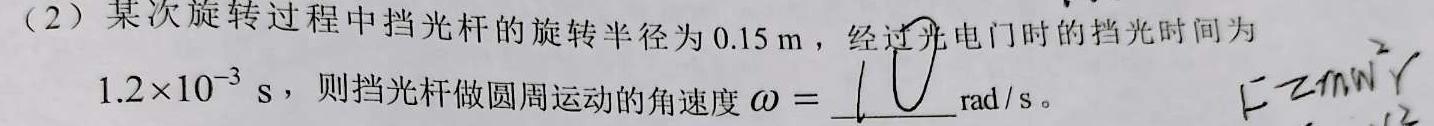 (2)某次旋转过程中挡光杆的旋转半径为0.15m,经过光1.210^-3s,则挡光杆做圆周运动的角速度ω=电门时的挡光时间为rad/s。EZmm²