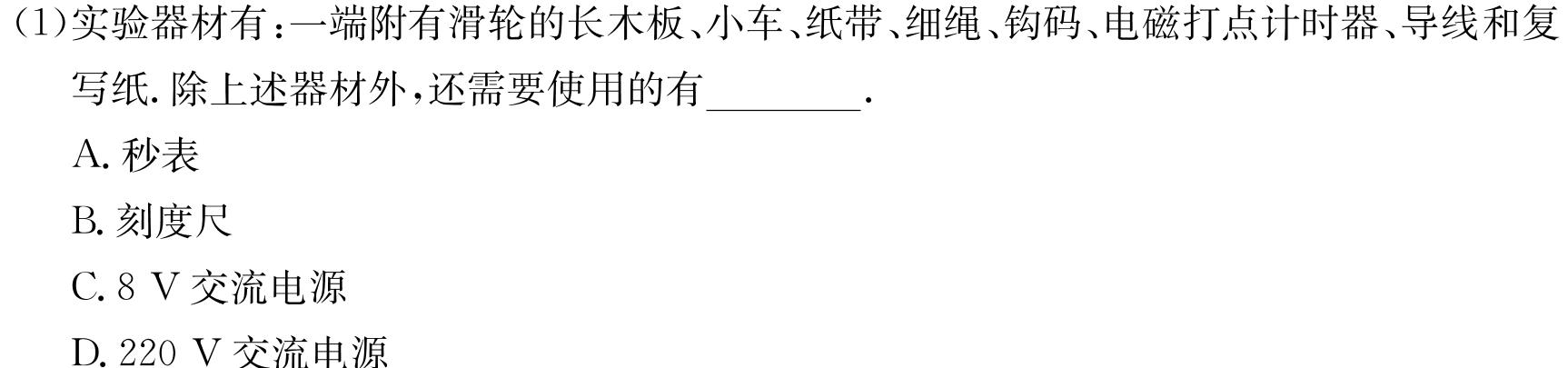 (1)实验器材有:一端附有滑轮的长木板、小车、纸带、细绳、钩码、电磁打点计时器、导线和复写纸.除上述器材外,还需要使用的有.A.秒表B.刻度尺C.8V交流电源D.220V交流电源
