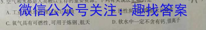 5.空气和水都是人类赖以生存的重要资源。下列有关说法正确的是AA.工业废水经处理达标后排放B.活性炭可以降低水的硬度C.氧气具有可燃性,可用于炼钢、航天D.软水中一定不含有钙、镁离子