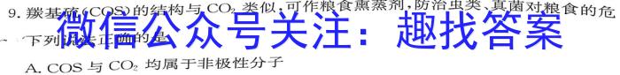 (COS)CO29.基硫(COS)的结构与CO类似,可作粮食熏蒸剂,防治虫类、真菌对粮食的危下列说法正确的是A.COS与CO2均属于非极性分子