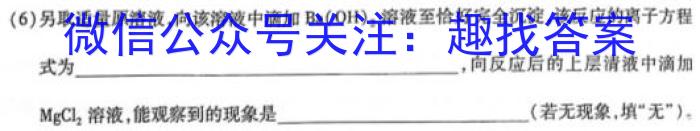 (6)另取适量原溶液,向该溶液中滴加Ba(OH)2,溶液至恰好完全沉淀,该反应的离子方程式为,向反应后的上层清液中滴加MgCl2溶液,能观察到的现象是(若无现象,填“无”)。