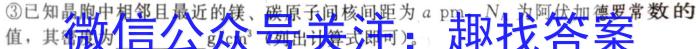 ③已知晶胞中相邻且最近的镁、碳原子间核间距为apm,NA为阿伏加德罗常数的值,其密度为g/cm^3(列出计算式即可)。