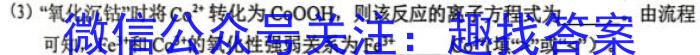 (3)“氧化沉钻”时将Co^2+转化为CoOOH,,则该反应的离子方程式为。由流程可知,Fe^3+Co^3+的氧化性强弱关系为Fe^3+Co^3+(填“>”或“<”)。