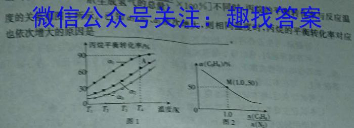 a5、a2、a3%不同时,丙烧的平衡转化率与反应温度的关系如图1所示。已知av、a依次增大,则相同温度时,丙烷的平衡转化率对应也依次增大的原因是丙平有转化率A60M1.0.50)350TnT2T.温度压图1102(C2R0)n(N2)