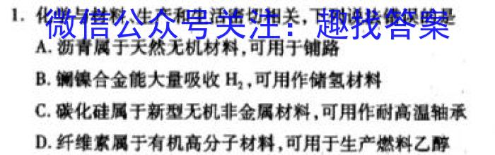 1.化学与材料、生产和生活密切相关,下列说法错误的是A.沥青属于天然无机材料,可用于铺路B.镧镍合金能大量吸收H2,,可用作储氢材料C.碳化硅属于新型无机非金属材料,可用作耐高温轴承D.纤维素属于有机高分子材料,可用于生产燃料乙醇