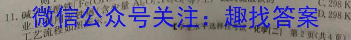 11.碱式硫酸铁[业上利用废铁屑(含少量工艺流程如图所示。【【学业水平选择性考试·化学(二)第2页(共4页)足量稀硫酸H2SO3aNO4玻铁屑调节pH反碱式硫酸铁AOH)NO下列说法不正确的是1合反应B.“过滤”所得滤液中溶质主要是Fe2(SO4)3C.“反应Ⅱ”对应的离子方程式Fe^2++NO2^2+2H^+Fe^3++NO1^4+H2OD.合理处理废铁屑有利于环境保护和资源再利用A.“反应中包含的反应类型有置换反应、复分解反应和化