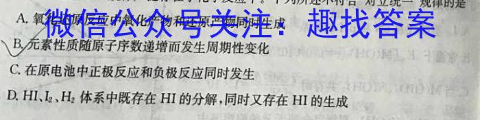 3.哲学的“对立统一”规律广泛存在于化学反应中。下列所述不符合“对立统一”规律的是A.氧化还原反应中氧化产物和还原产物同时生成B.元素性质随原子序数递增而发生周期性变化C.在原电池中正极反应和负极反应同时发生D.HI、I2、H2体系中既存在HI的分解,同时又存在HI的生成