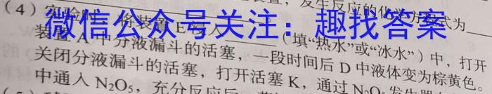 装置A中分液漏斗的活塞,一段时间后D中液体变为棕黄色。、(填“热水”或“冰水”)中,打开中通入关闭分液漏斗的活塞,打开活塞K,通过N2O5,