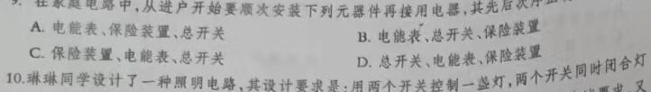 月99.在家庭电路中,从进户开始要顺次安装下列元器件再接用电器,其先后次序正确的是(A.电能表、保险装置、总开关B.电能表、总开关、保险装置C.保险装置、电能表、总开关D.总开关、电能表、保险装置