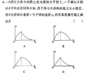 6.一均质长方体木块静止在光滑的水平面上,一子弹以不同同的水平初速度射向木块,设子弹与木块间的阻力大小恒定,则木块获得的速度v与子弹初速度t0的关系图像可能正确的是()