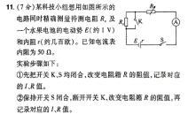 11.(7分)某科技小组想用如图所示的电路同时精确测量特测电阻Rn及一个本果电池的电动势E(和内阻r约几百歌)。已知电流表内阻为实验步骤如下:①先把开美均闭合,改变电阻霜及的阻值,记对应的值。②保持开关8闭合,断开开关K.,改变电阻箱R的阻值,再记最对应的