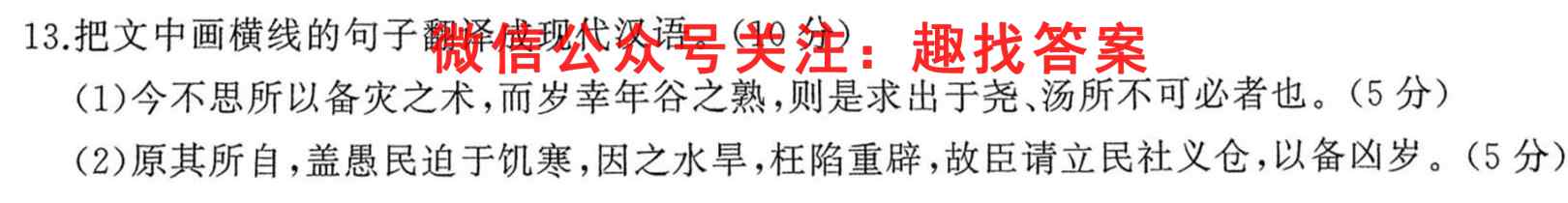 13.把文中画横线的句子翻译成现代汉语。(10分)(1)今不思所以备灾之术,而岁幸年谷之熟,则是求出于尧、汤所不可必者也。(5分)(2)原其所自,盖愚民迫于饥寒,因之水旱,枉陷重辟,故臣请立民社义仓,以备凶岁。(5分)