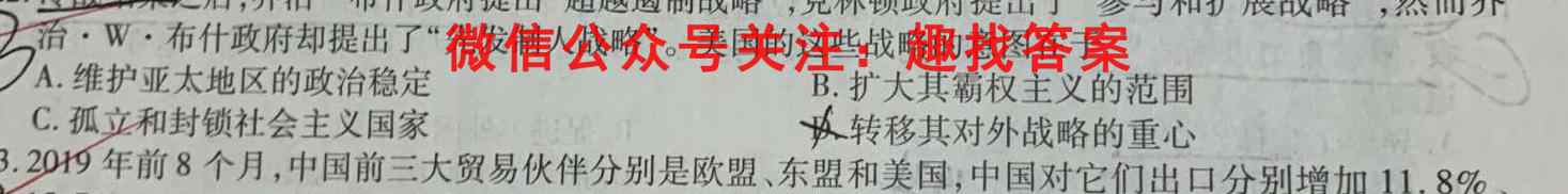 2.冷战结之后,乔治·布什政府提出“超越遏制战略”,克林顿政府提出了“参与和扩展战略”,然而养B·布什政府却提出了“先发制人战略”。美国的这些战略的意图在于A.维护亚太地区的政治稳定B.扩大其霸权主义的范围C.孤立和封锁社会主义国家队转移其对外战略的重心