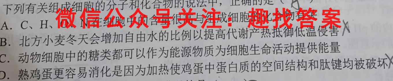A.C、H、O、N在细胞中的含量很高与组成细胞的化合物有关B.北方小麦冬天会增加自由水的比例以提高代谢产热抵御低温侵害C.动物细胞中的糖类都可以作为能源物质为细胞生命活动提供能量D.熟鸡蛋更容易消化是因为加热使鸡蛋中蛋白质的空间结构和肽键均被破坏