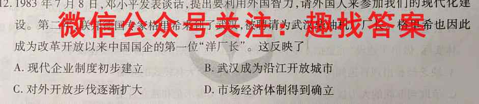 12.1983年7月8日,邓小平发表谈话,提出要利用外国智力,请外国人来参加我们的现代化建设。第二年,联邦德国专家格里希来到了武汉,被聘请为武汉柴油机厂长。格里希也因此成为改革开放以来中国国企的第一位“洋厂长”。这反映了A.现代企业制度初步建立B.武汉成为沿江开放城市C.对外开放步伐逐渐扩大D.市场经济体制得到确立