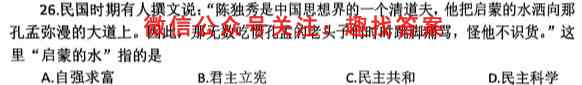 26.民国时期有人撰文说:“陈独秀是中国思想界的一个清道夫,他把启蒙的水洒向那孔孟弥漫的大道上。因此,那无数吃惯孔孟的老头子们时时跳脚痛骂,怪他不识货。”这里“启蒙的水”指的是A.自强求富B.君主立宪C.民主共和D.民主科学