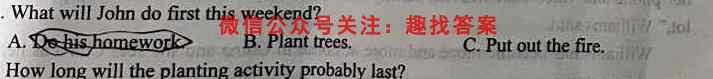 听第6段材料,回答第6、7题。 olav fna anodq orl6.What will John do first this weekend?A. De his homeworkB. Plant trees. C.Put out the fire.