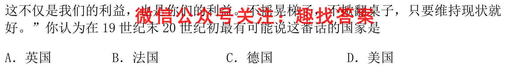 这不仅是我们的利益,也是你们的利益。不摇晃**,不掀翻桌子,只要维持现状就好。”你认为在19世纪末20世纪初最有可能说这番话的国家是A.英国B.法国C.德国D.美国