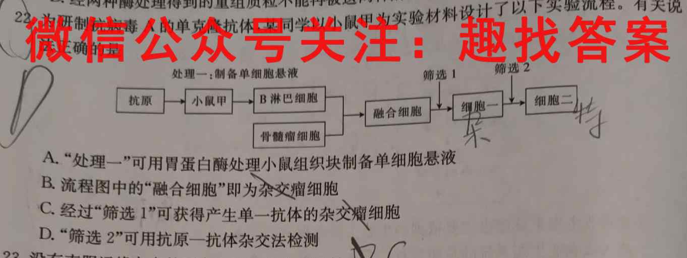 2023年普通高等学校招生全国统一考试·仿真模拟卷2(二)生物试卷答案试卷答案,我们目前收集并整理关于2023年普通高等学校招生全国统一考试·仿真模拟卷2(二)生物试卷答案得系列试题及其答案,更多试题答案请关注微信公众号:趣找答案/直接访问www.qzda.com(趣找答案)