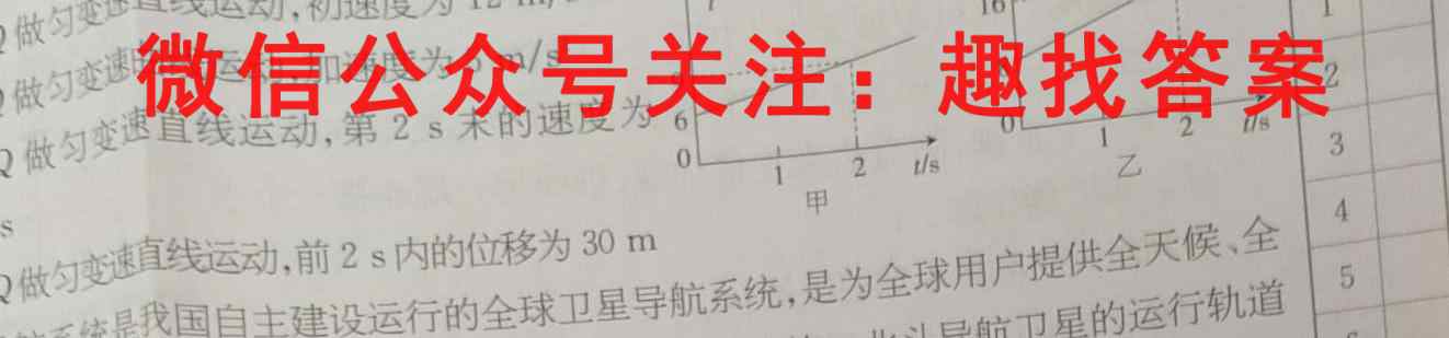 A.质点Q做匀变速直线运动,初速度为12m/s12m/sB.质点Q做匀变速曲线运动,加速度为5m/s²5m/s^2速直直线C.质点Q做匀变速直线运动,第2s末的速度为9620m/sD.质点Q做匀变速直线运动,前2s内的位移为30mA.xt/(ms^-1)v/(m16812t/s12t/s乙甲