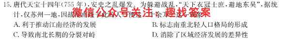 15.唐代天宝十四年(755年),安史之乱爆发。为躲避战乱,“天下衣冠士庶,避地东吴”,据统计,仅苏州一地,因战乱南迁于此的人口便达二十余万。这一现象A.利于推动江南经济的发展B.标志南重北轻人口格局的形成C.导致南北长期的分裂对峙D.消除了区域经济发展的差异性
