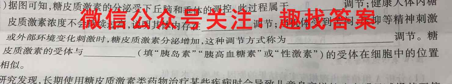 (1)据图可知,糖皮质激素的分泌受下丘脑和垂体的调控,此过程属于调节;健康人体内糖皮质激素浓度不会持续过高,说明其体内存在调节;当机体受到苦闷、压抑等精神刺激或外部环境变化刺激时,糖皮质激素分泌增加,这种调节方式称为方式称为调节。糖皮质激素的受体与(填“胰岛素”“胰高血糖素”或“性激素”)的受体在细胞中的位置相似。